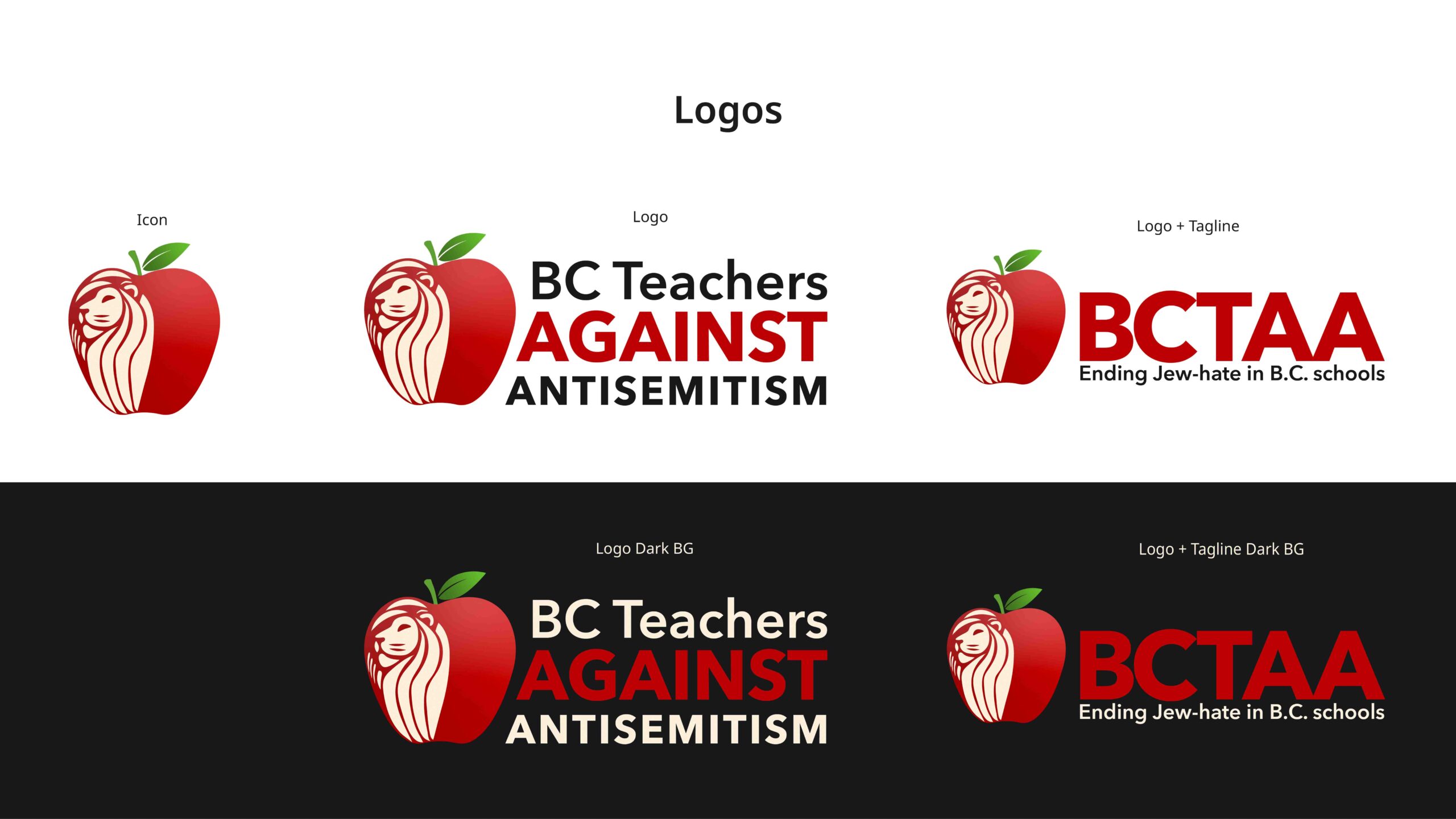 BCTAA came to me with a powerful mission: to confront and dismantle antisemitism in B.C.’s education system. As a grassroots collective of educators, their tone needed to be strong, fair, and accessible not only to Jewish communities but to the broader public. I built a brand identity that reflects this vision, steering away from traditional Jewish symbolism, instead, created a visual language rooted in strength, education, and subtle cultural cues. For their logo, I created a lion carved into an apple to symbolize both courage and the teaching profession. (Apples have long been associated with education and teachers. It’s a symbol of respect and gratitude dating back centuries.)