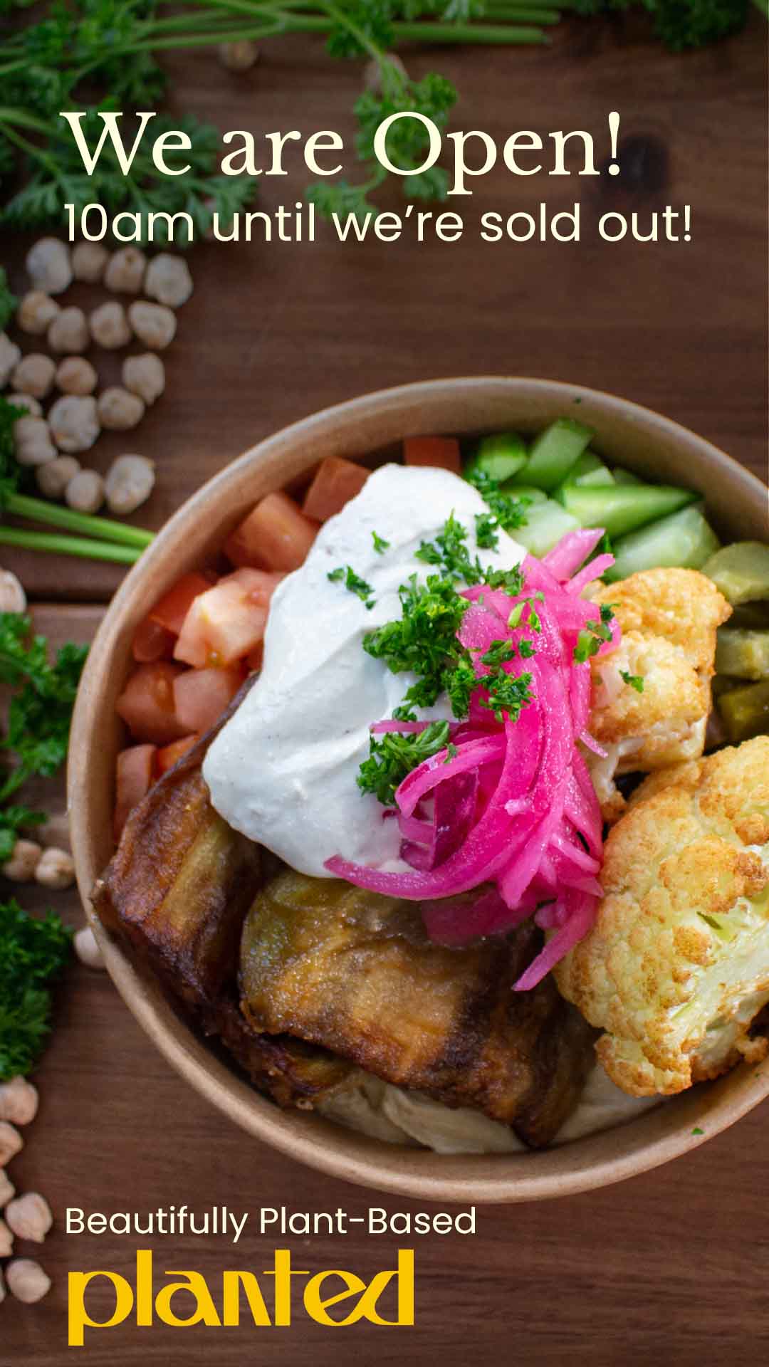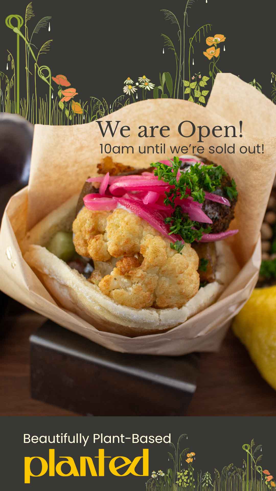 Planted is a plant-based Mediterranean food truck serving up hearty, wholesome, and flavour-packed vegan dishes to the streets of Vancouver. From crispy falafel to handmade pitas loaded with vibrant salads and bold sauces, every meal is crafted with care, fresh ingredients, and a generous dose of homemade love.